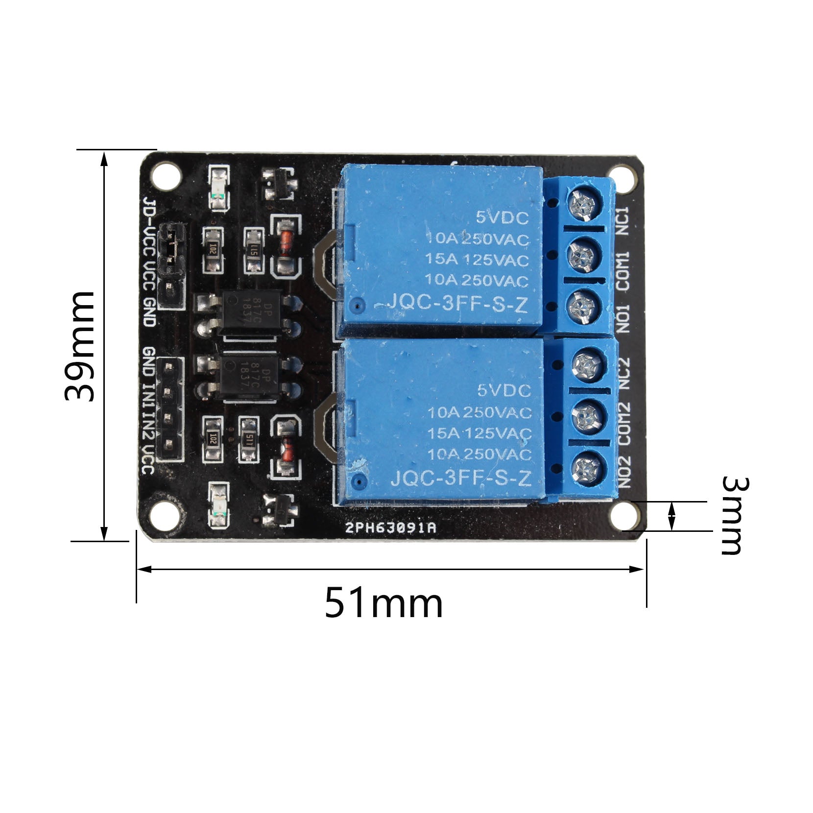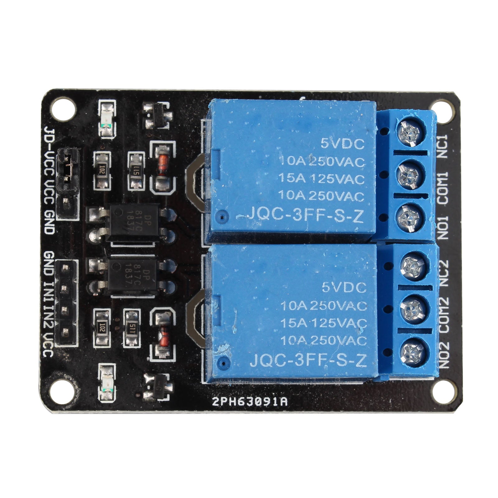 VCC is the system power supply, and JD_VCC is the relay power supply. The default 5V relay, plug in the jumper cap.