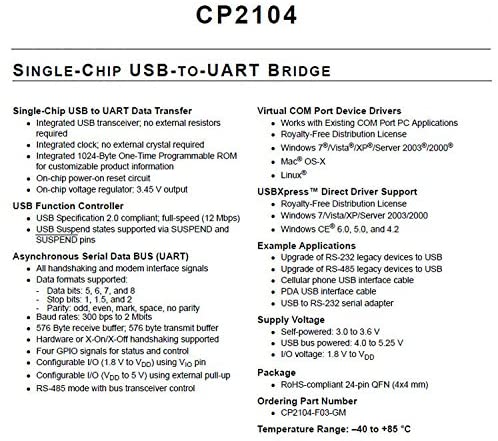 This CP2104 Module Serial Converter is designed to be used for USB to TTL electronic projects and STC downloading and Used for upgrade of DVD/hard disk/Router/GPS
